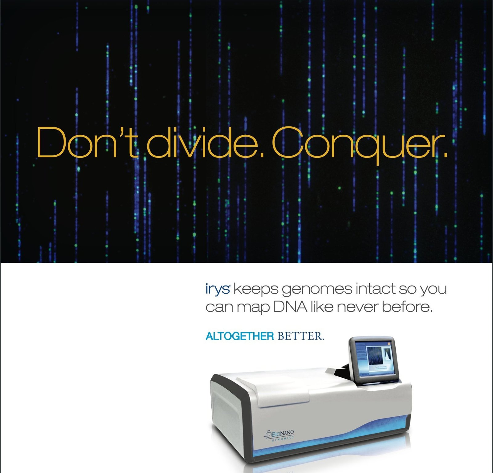 Tagline for Bionano Genomics, whose tech allowed researchers to see fully intact genomes (they previously had to look at chopped-up fragments).